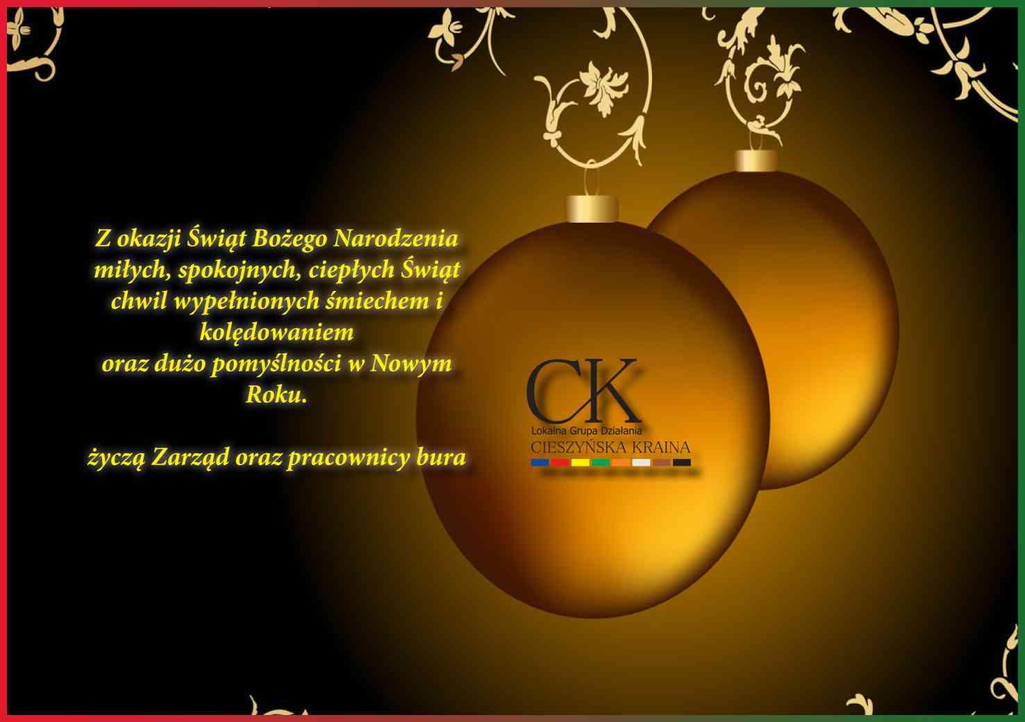 SZCZĘŚLIWYCH ŚWIĄT BOŻEGO NARODZENIA SPĘDZONYCH W GRONIE NAJBLIŻSZYCH ORAZ DUŻO ZDROWIA W NOWYM ROKU ŻYCZY ZARZĄD WRAZ Z PRACOWNIKAMI BIURA LGD "CIESZYŃSKA KRAINA"